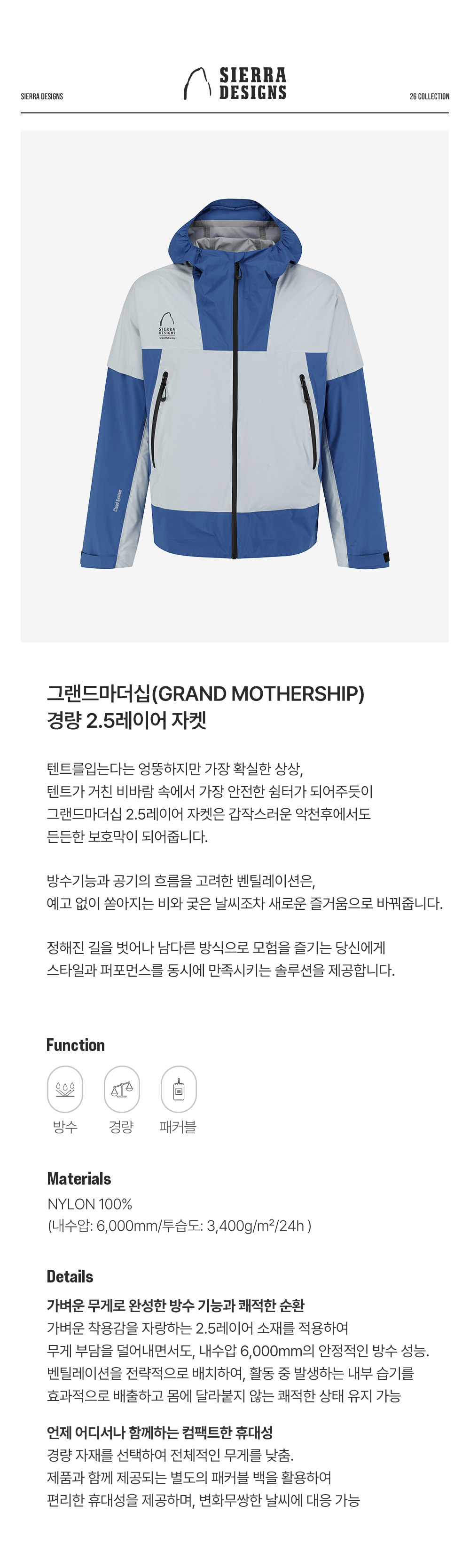 시에라디자인 그랜드마더십 경량 2.5레이어 자켓 블루