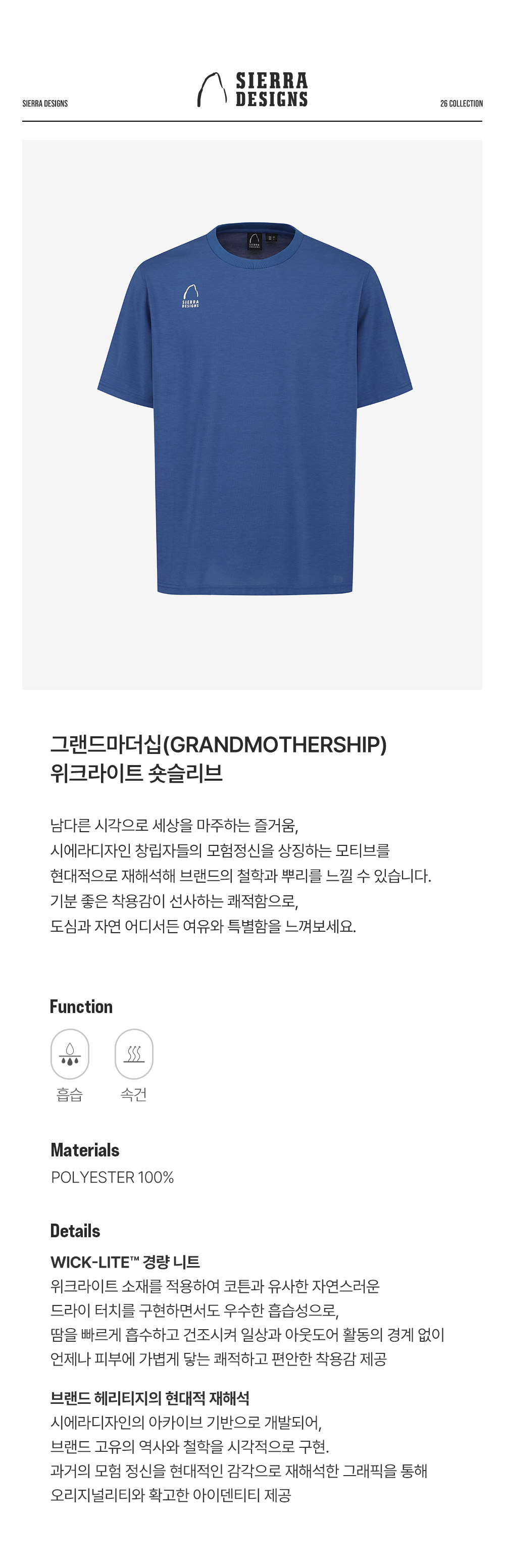 시에라디자인 그랜드마더십 위크라이트 숏슬리브 블루