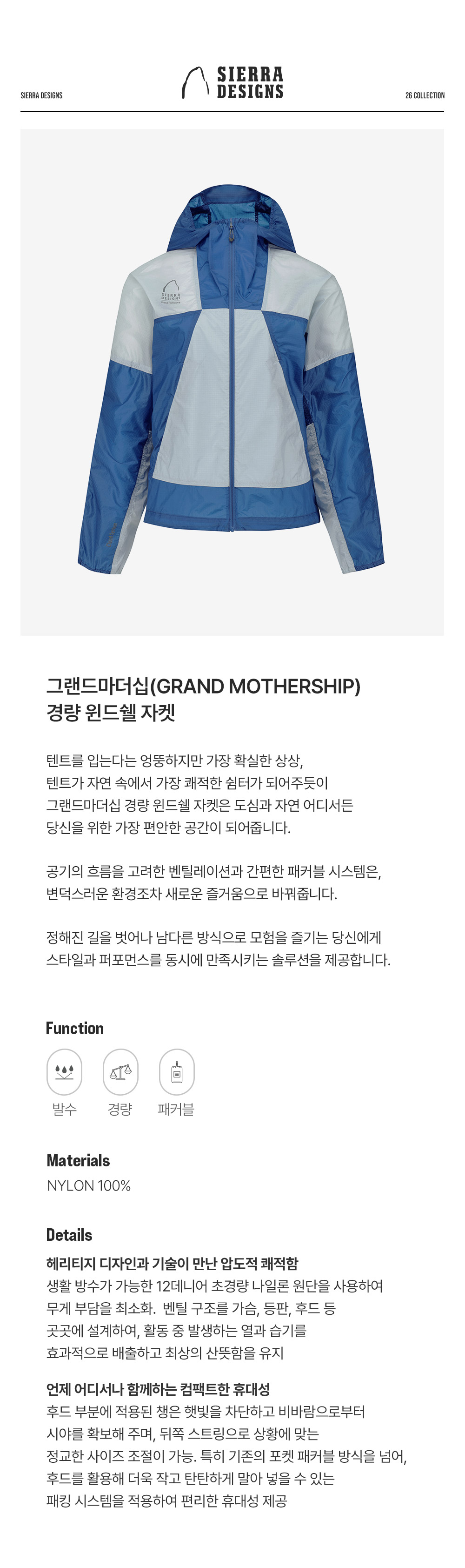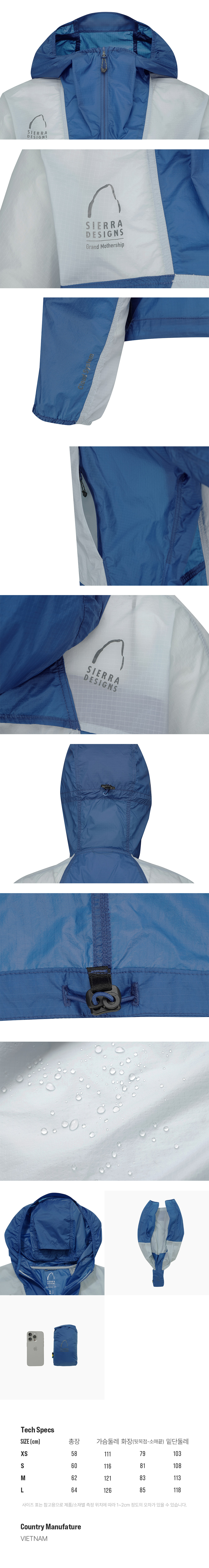 시에라디자인 W 그랜드마더십 경량 윈드쉘 자켓 블루