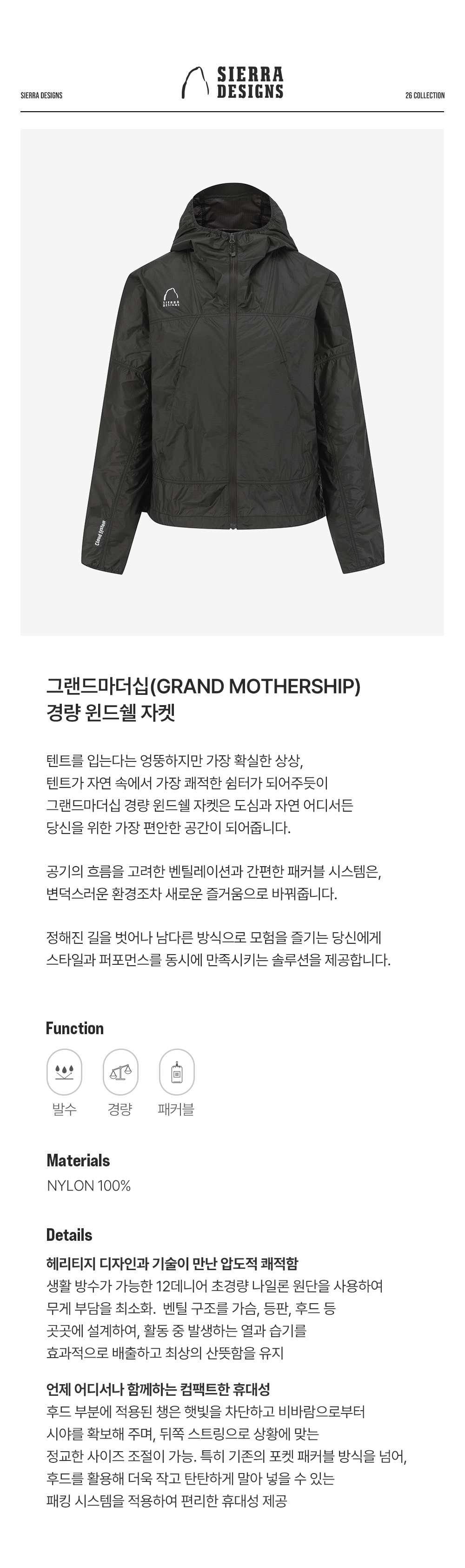 시에라디자인 W 그랜드마더십 경량 윈드쉘 자켓 블랙