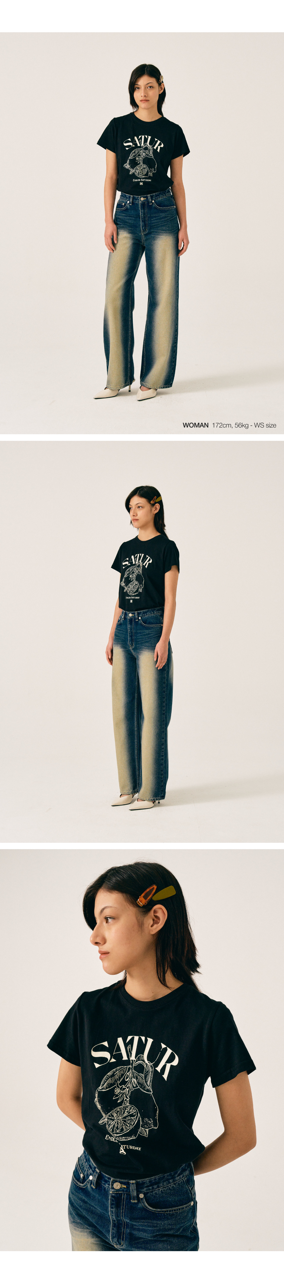 SATUR Capri Citron Drawing Summer Graphic T-Shirt Classic Black