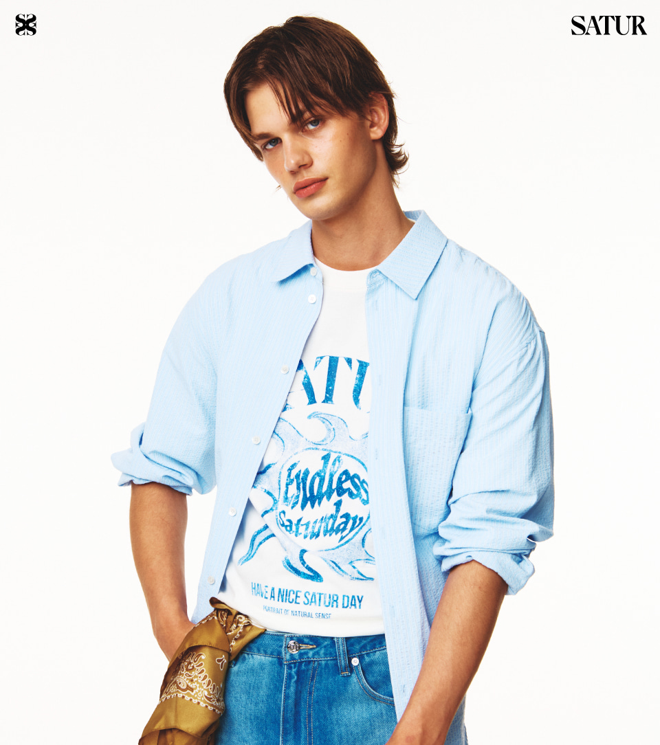SATUR Sun Retro Graphic T-Shirt Art Blue