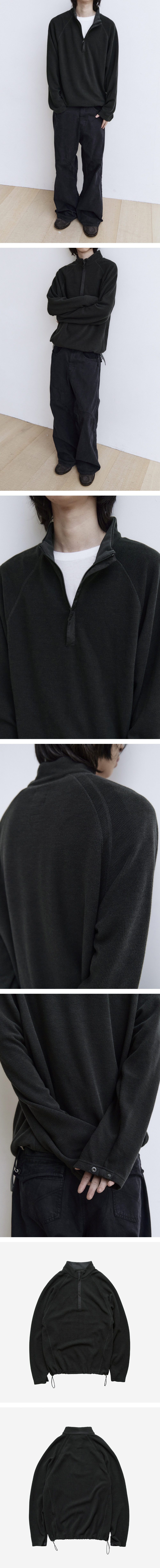 placket half zip -전면 배색 플라켓 디테일이 적용된 하프 집업 -넥라인 안쪽은 부드러운 소재로 마감 -유려하게 떨어지는 실루엣 -부드러운 착용감 -소매 스냅을 통한 실루엣 조절 가능 *모델: 178cm / 마른 체형, 3사이즈 착용