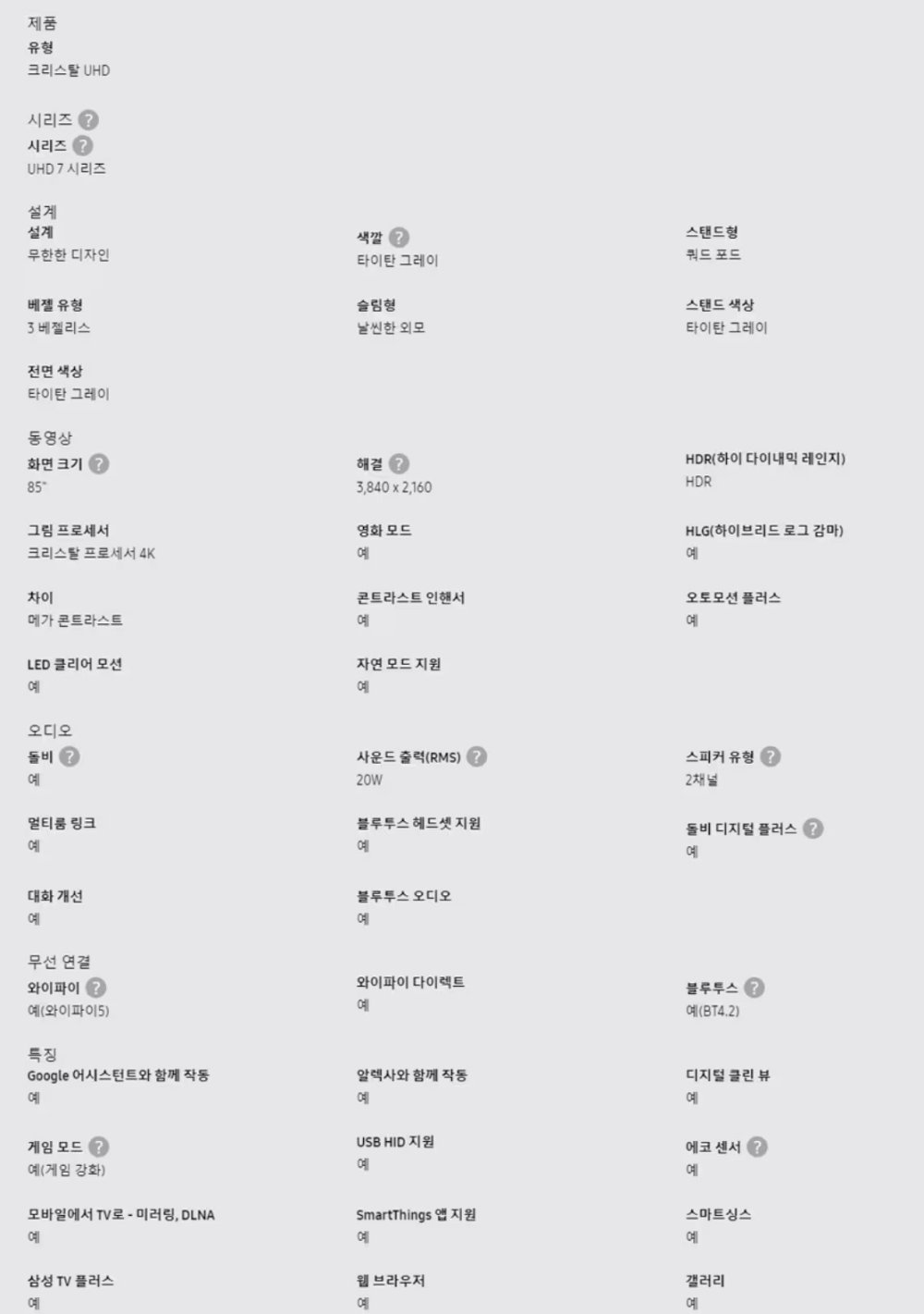 [S등급] 리퍼비시 삼성 85인치 최신형 UHD 4K 스마트TV 85CU7000 벽걸이형 방문설치