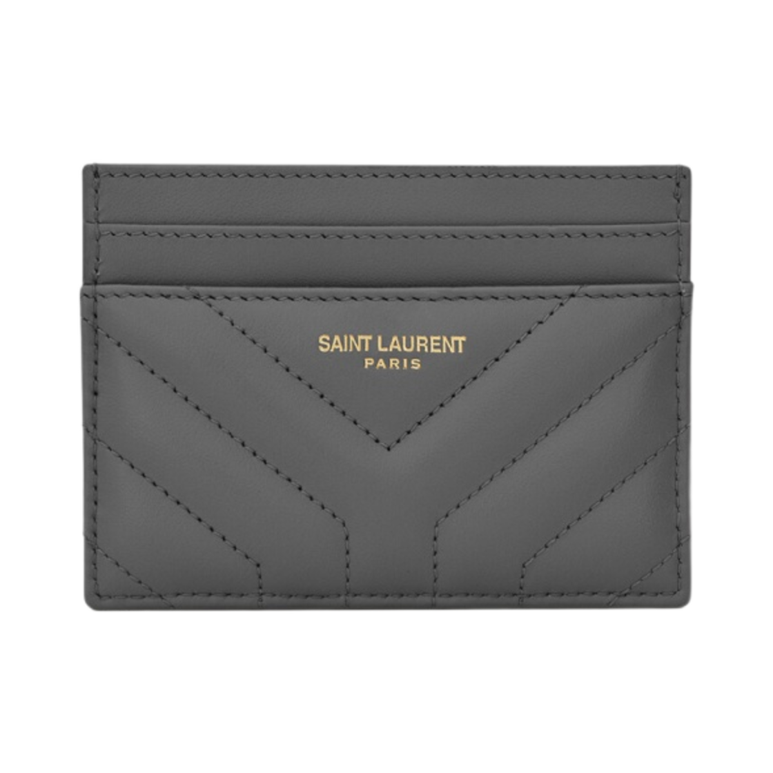 Saint Laurent Joan Card Case in Quilted Leather Storm