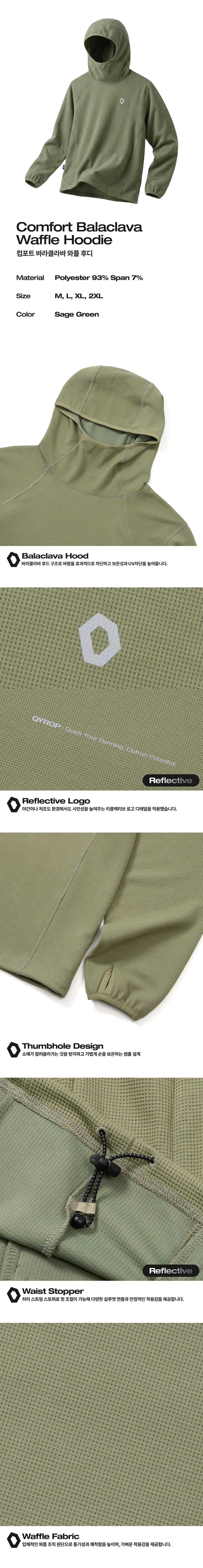 에프씨엠엠 스포츠 컴포트 바라클라바 와플 후디 세이지 그린