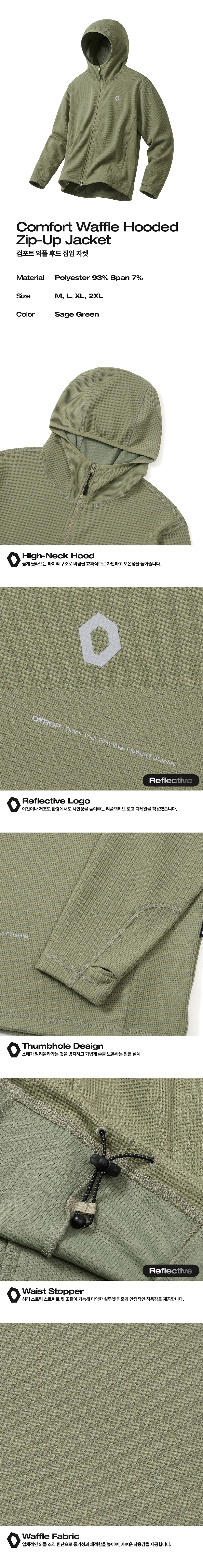 에프씨엠엠 스포츠 컴포트 와플 후드 집업 자켓 세이지 그린