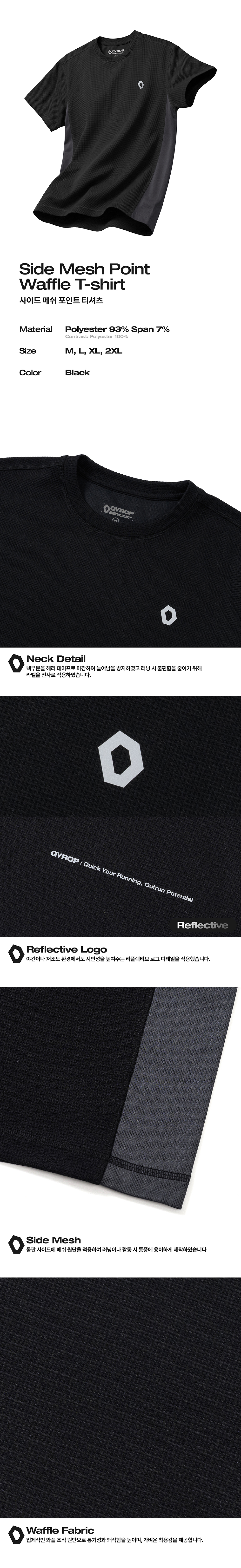 에프씨엠엠 스포츠 사이드 메쉬 포인트 와플 티셔츠 블랙