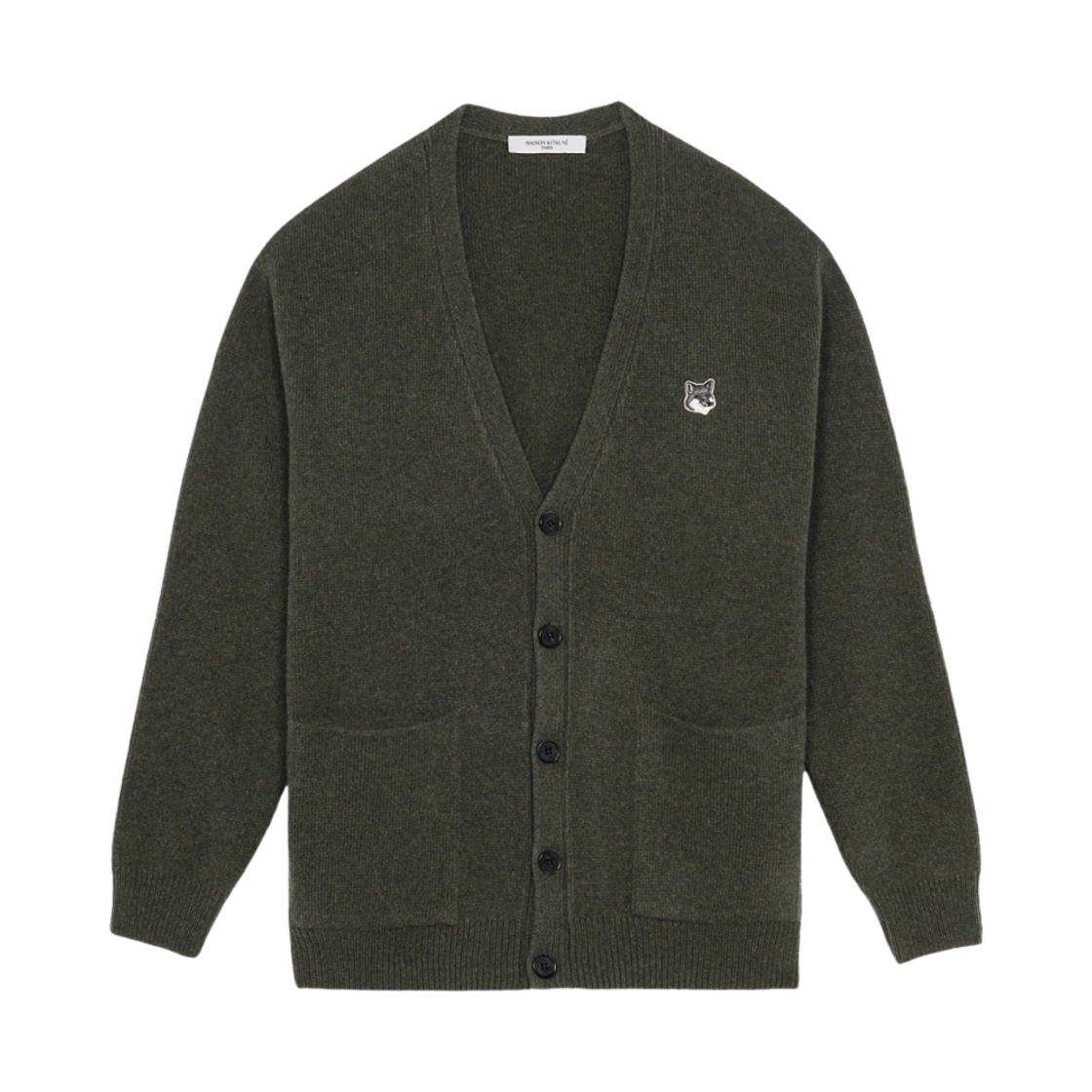 메종 키츠네 그레이 폭스 헤드 패치 릴렉스드 가디건 카키 그레이