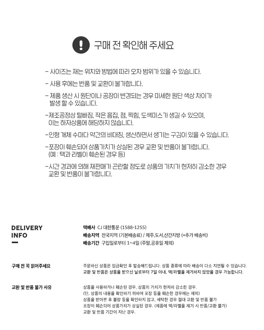 교환 및 반품 안내