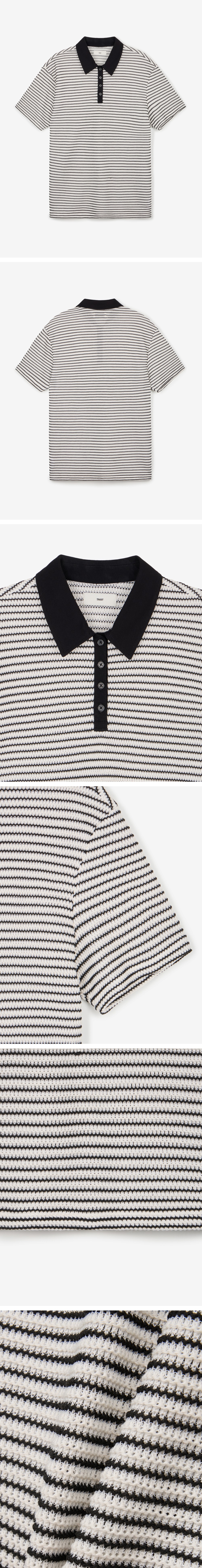 티엔지티 크로셰 스트라이프 폴로 티셔츠 블랙