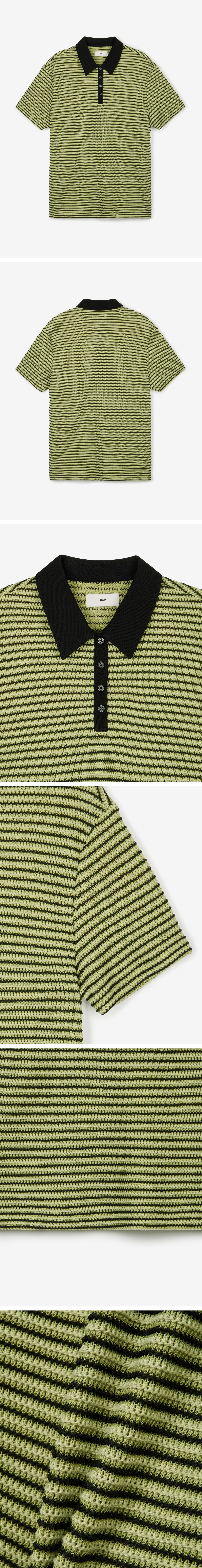 티엔지티 크로셰 스트라이프 폴로 티셔츠 라이트그린