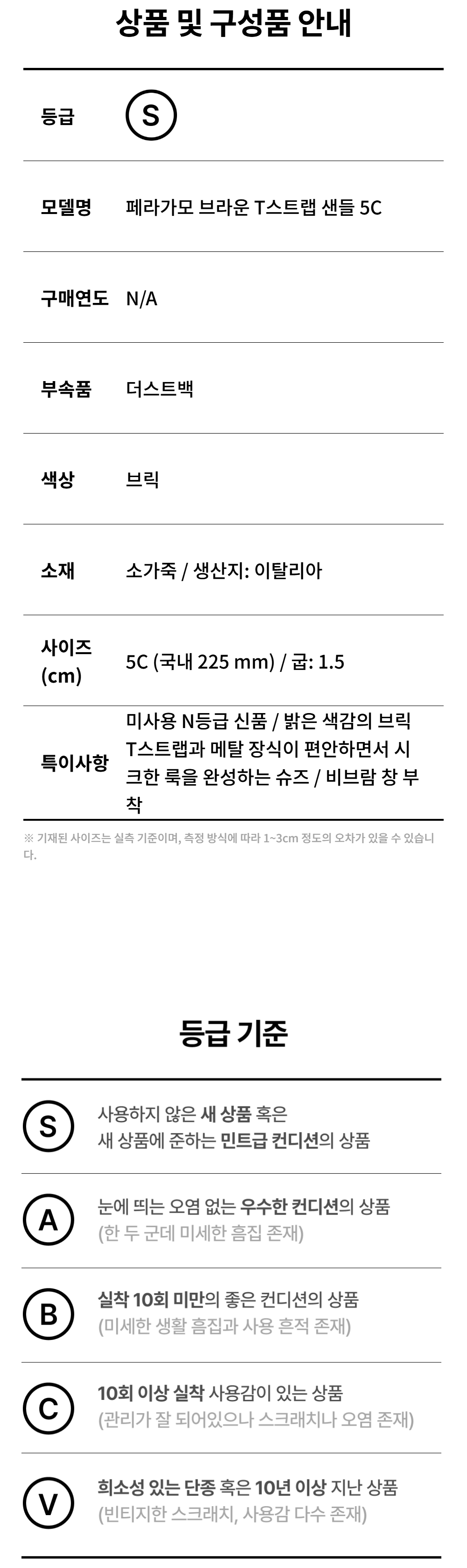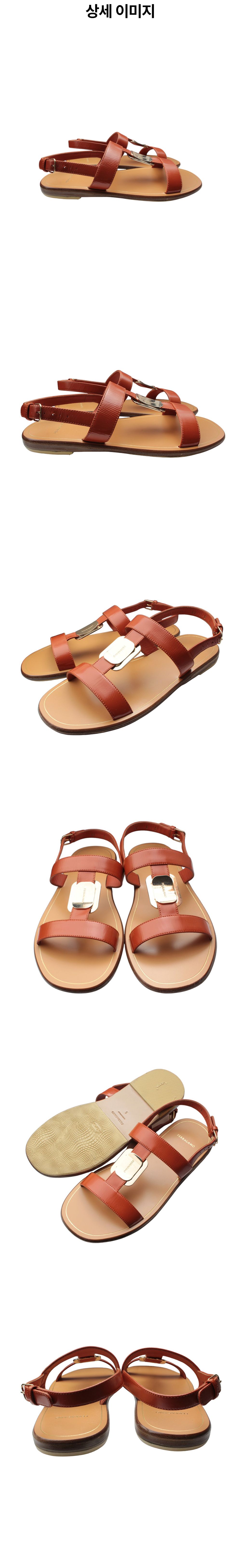페라가모 브라운 T스트랩 샌들 5C