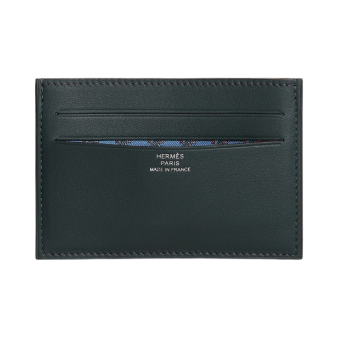 Hermes Citizen Twill Card Holder Swift & Vert Rousseau Bleu France Bleu Saphir