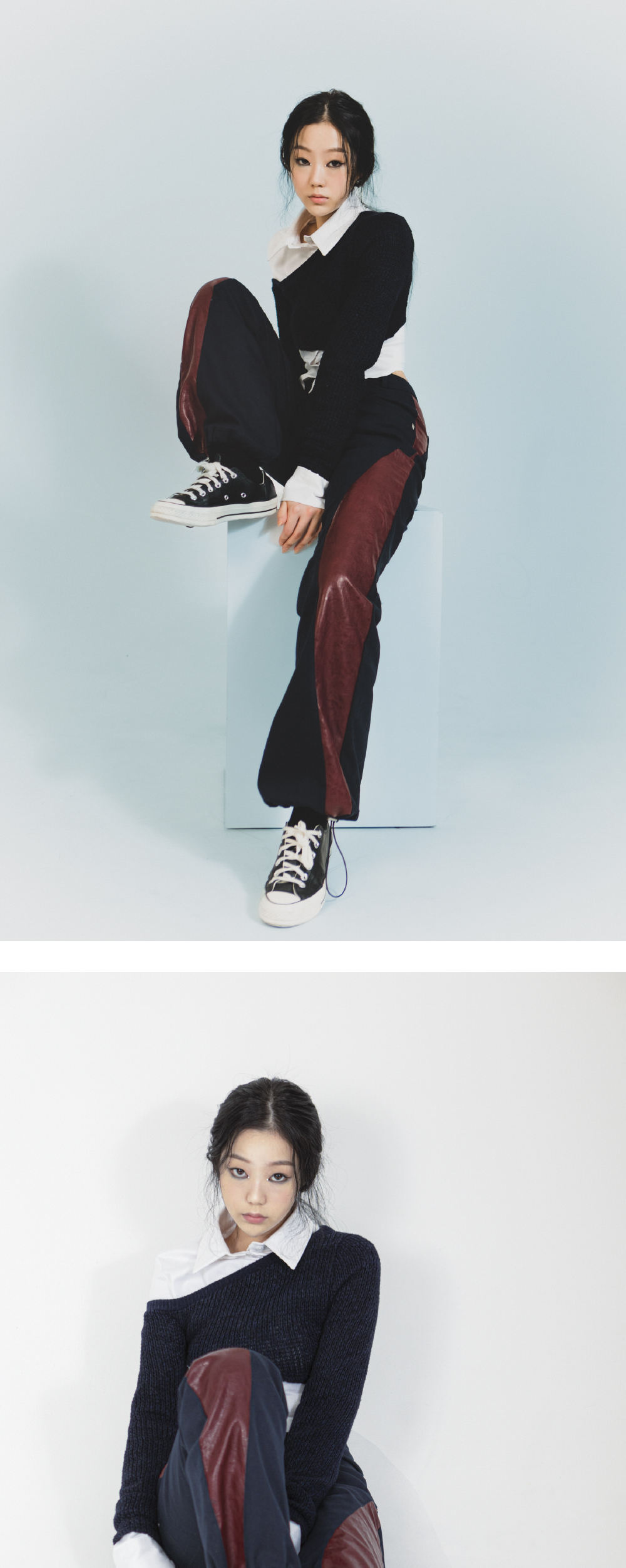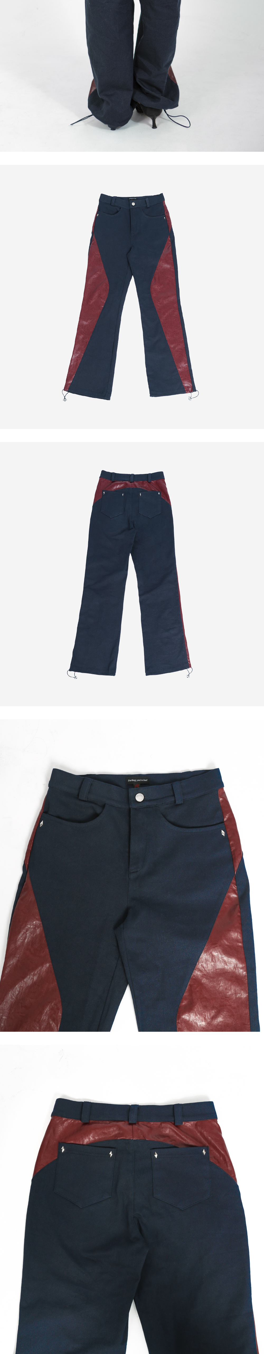 [22 FW BAD DARLINGS CLUB] *KREAM EXCLUSIVE : 크림과 공식 사이트에서만 판매되는 제품입니다. - NAVY&WINE COLOR - 밑단 스트링으로 스탠다드핏과 조거핏 연출 가능 - 다이아몬드 스터드 디테일 - Cotton/PU 원단과 가죽 원단의 곡선 배색 포인트