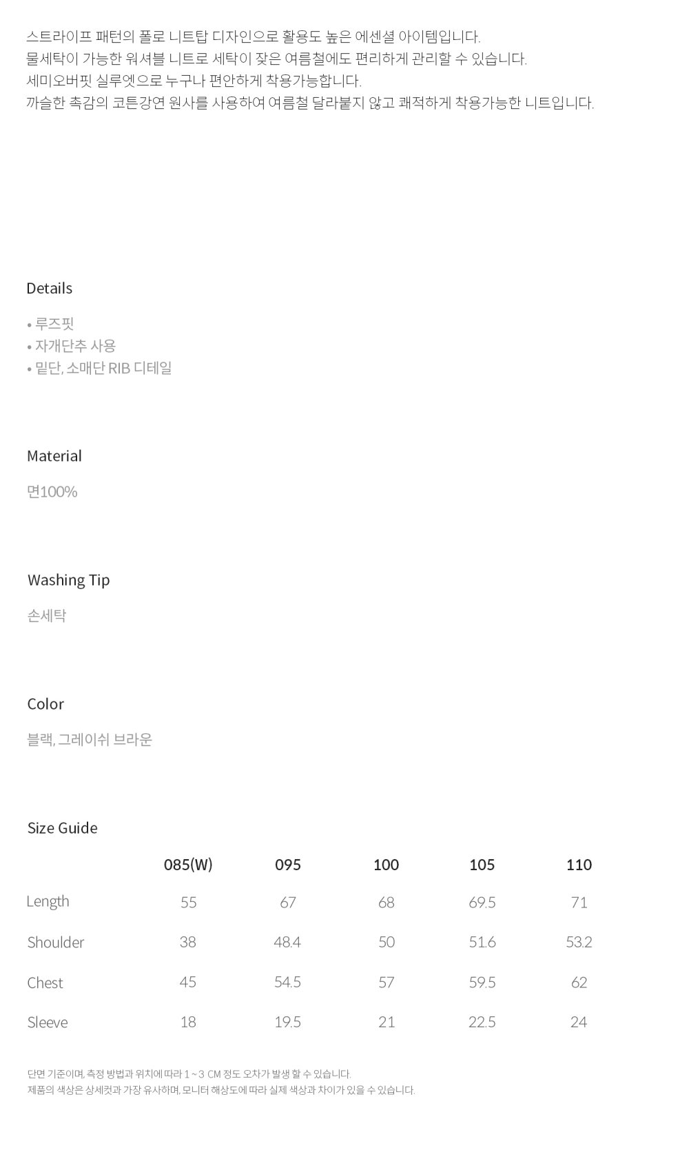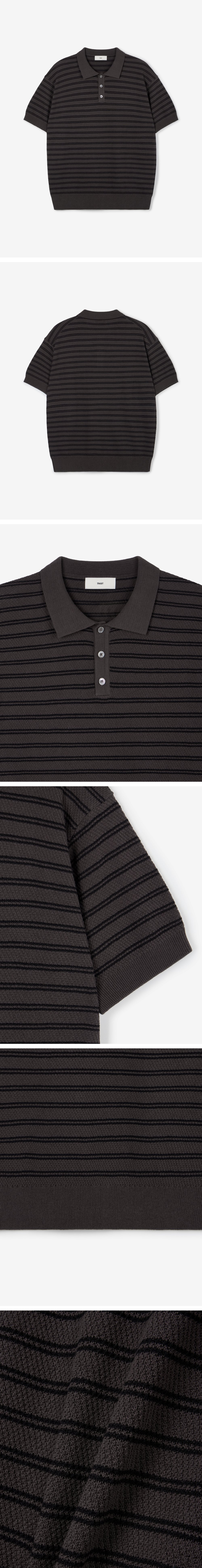 티엔지티 스트라이프 폴로 워셔블 니트 그레이시브라운