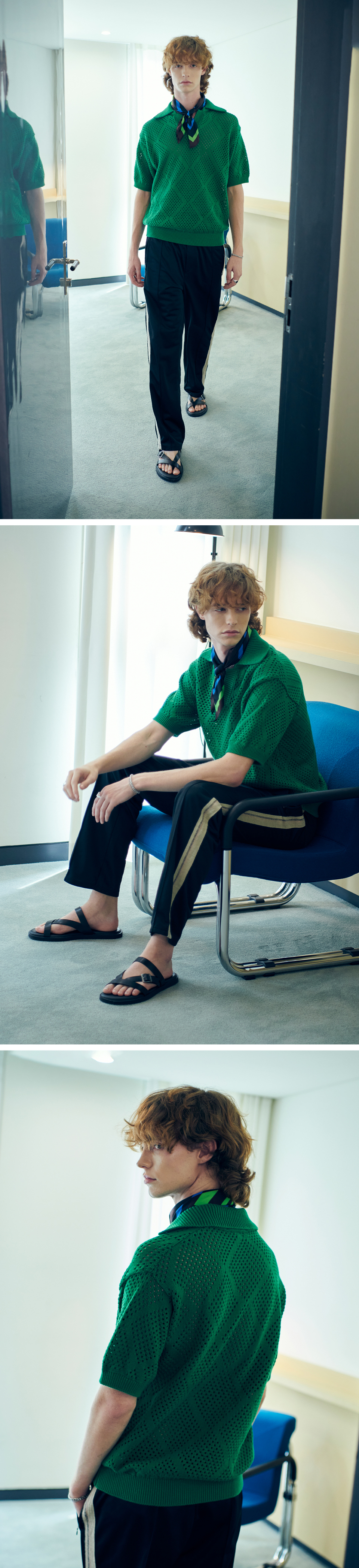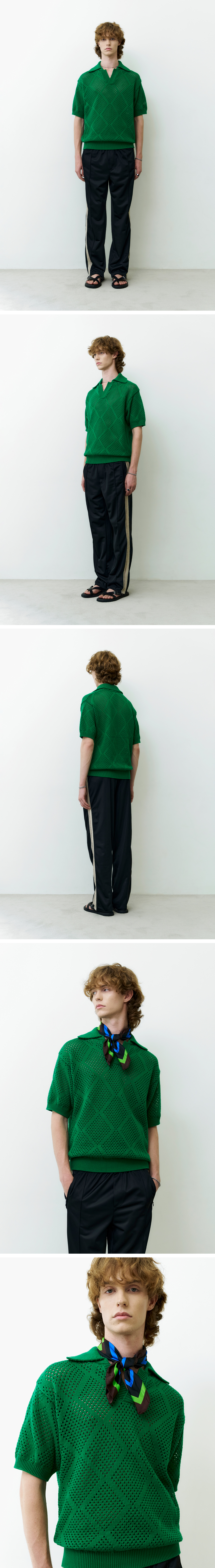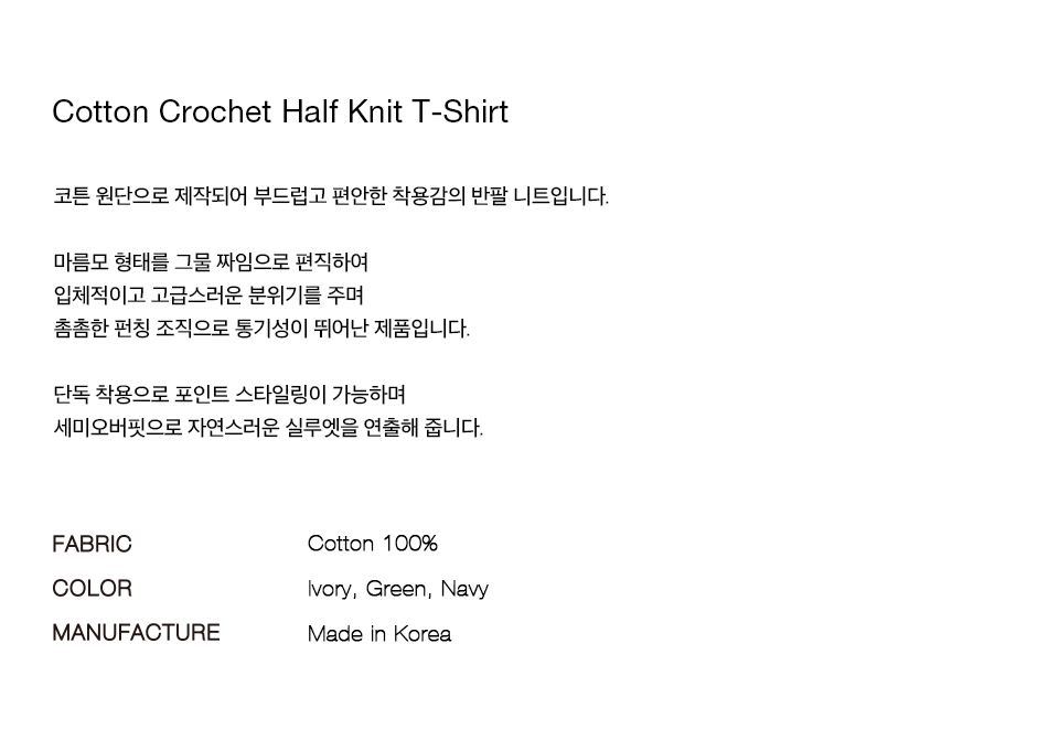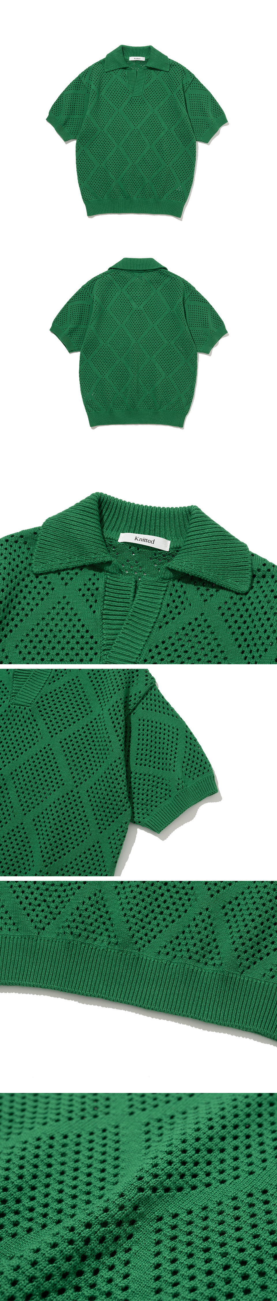 Knitted Cotton Crochet Half Knit T-Shirt Green