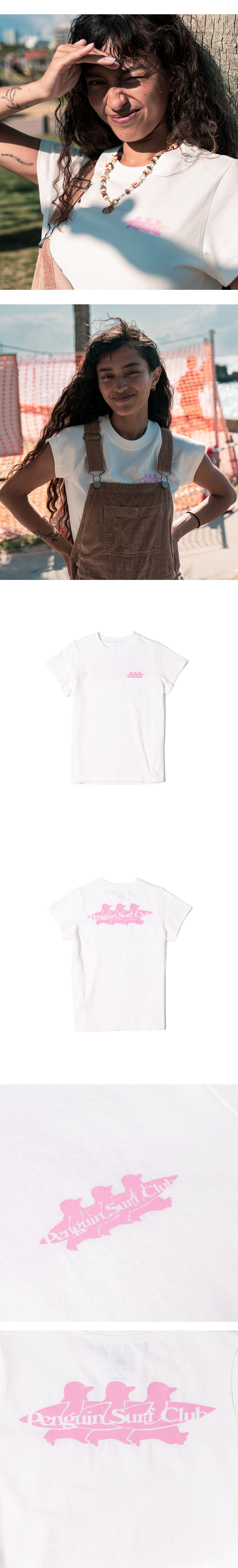 빅웨이브 컬렉티브 펭귄 서프 클럽 우먼 티셔츠 오프 화이트