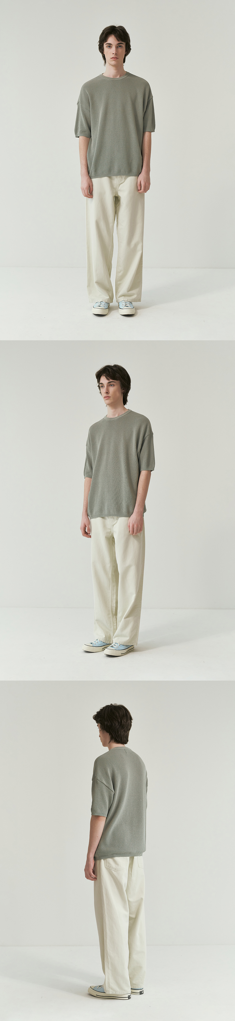니티드 쿨에버 라운드 반팔 니트티 세이지 그린