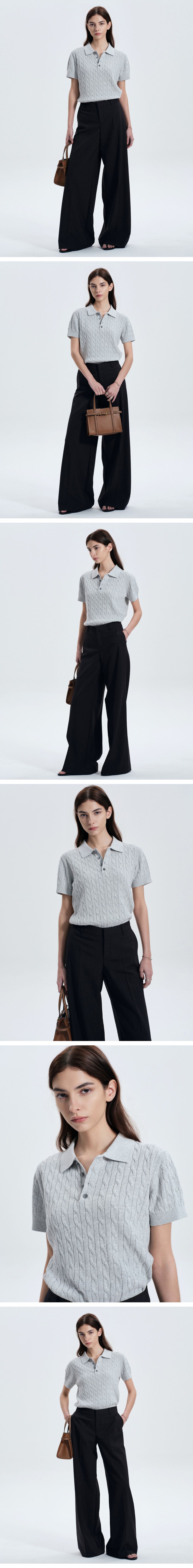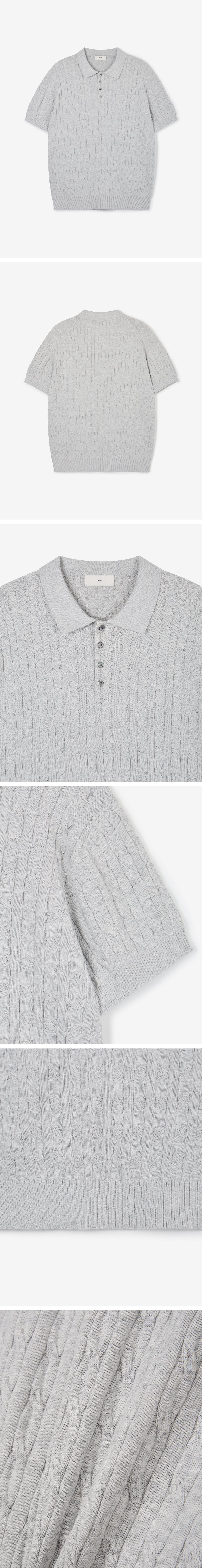 티엔지티 우먼 케이블 폴로 워셔블 니트 멜란지그레이