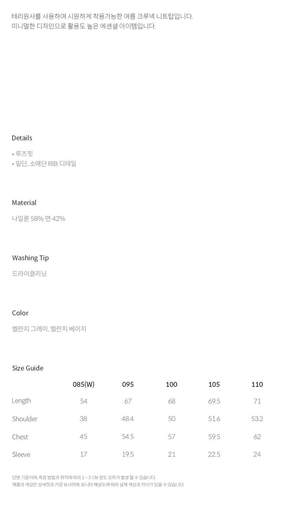 티엔지티 우먼 테리 크루넥 니트 멜란지그레이