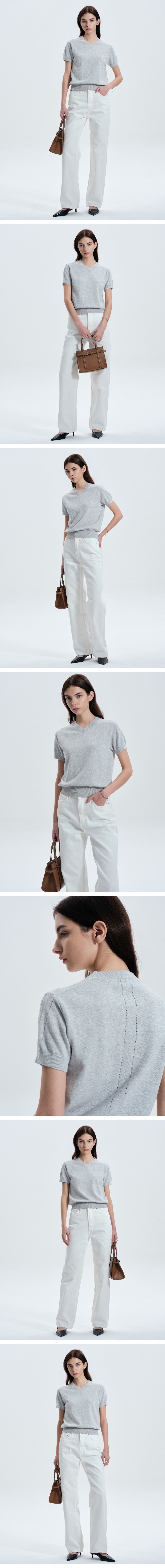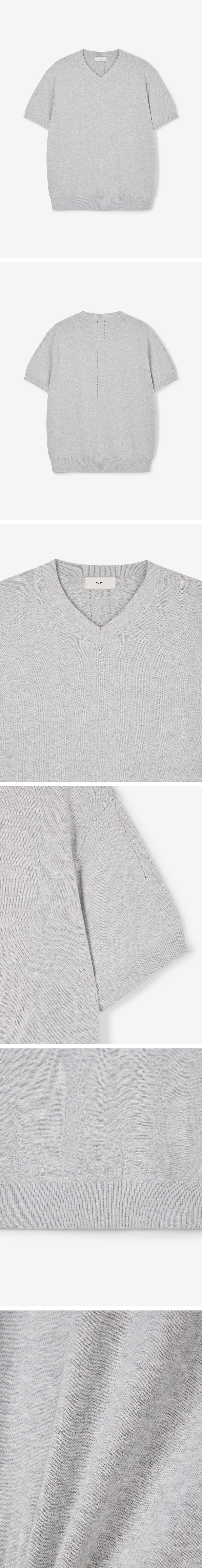 티엔지티 우먼 브이넥 니트 멜란지그레이