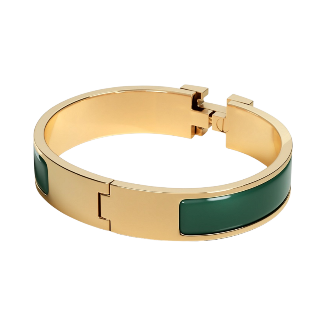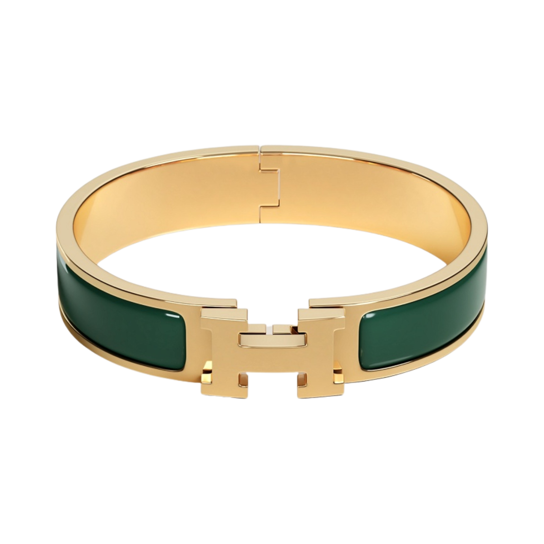 (W) Hermes Clic H Bracelet Gold & Vert Flamboyant