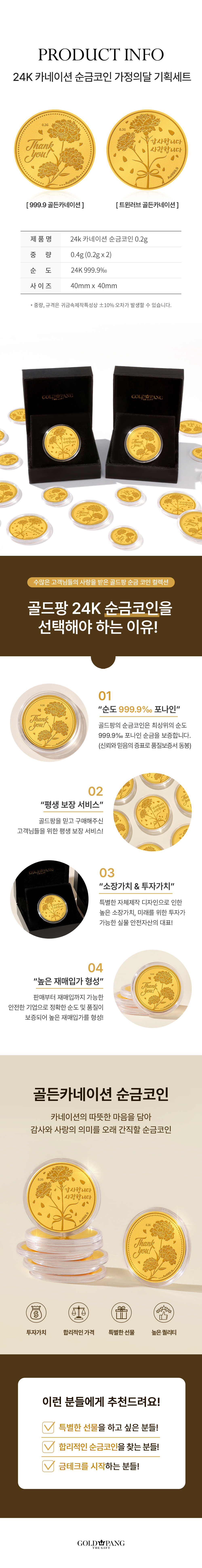골드팡 가정의 달 1+1 24k 순금 카네이션 0.2g 2종 세트 + 스페셜 복패키지