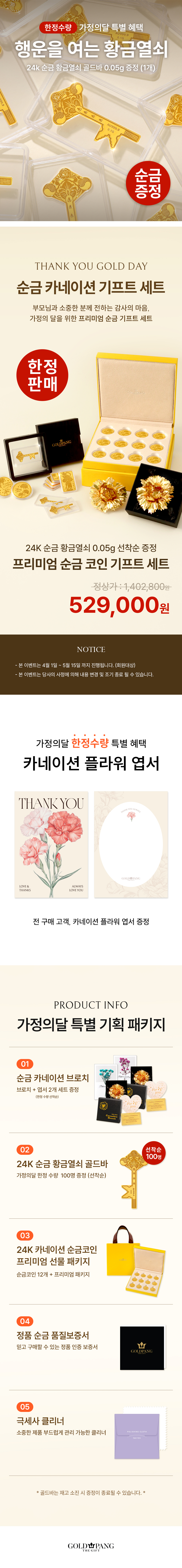 골드팡 가정의 달 24k 순금 카네이션 옐로우 기프트패키지 4종 택1