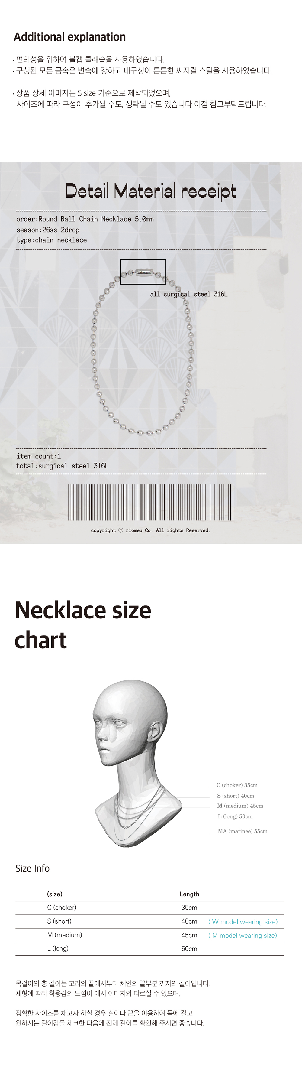 리오므 라운드 볼 체인 목걸이 5.0mm