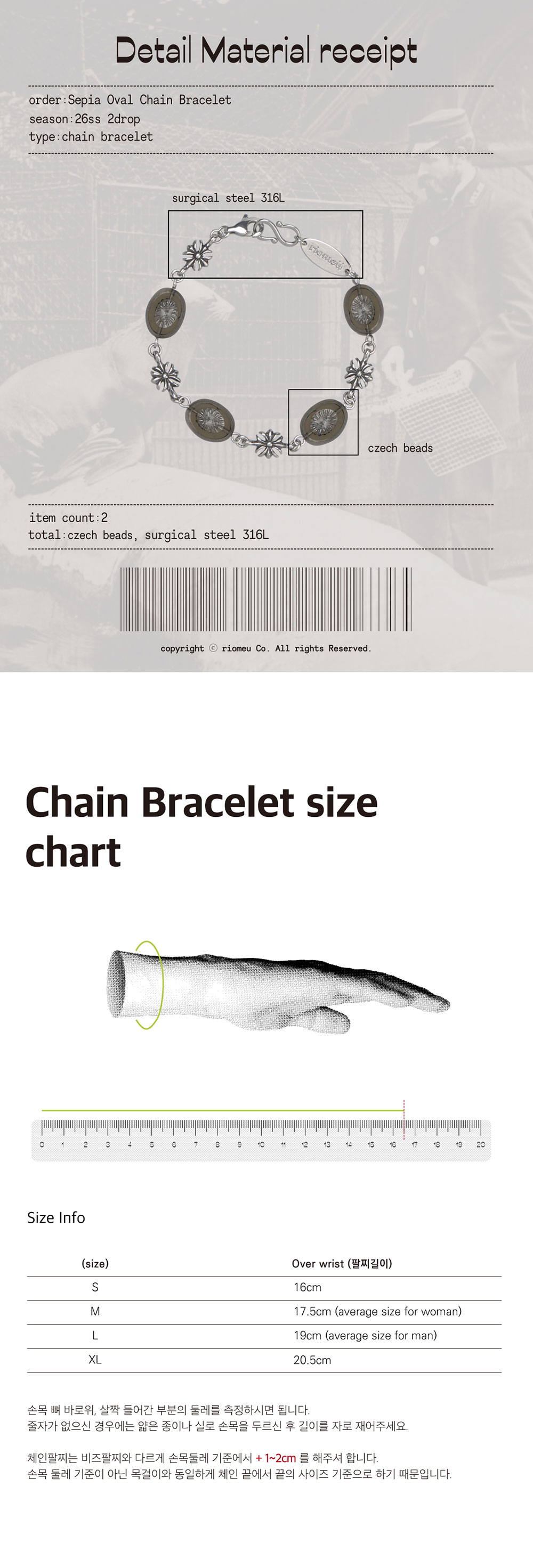 리오므 세피아 오벌 체인 팔찌