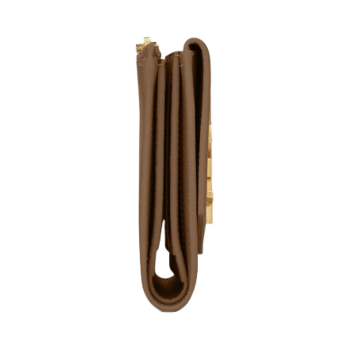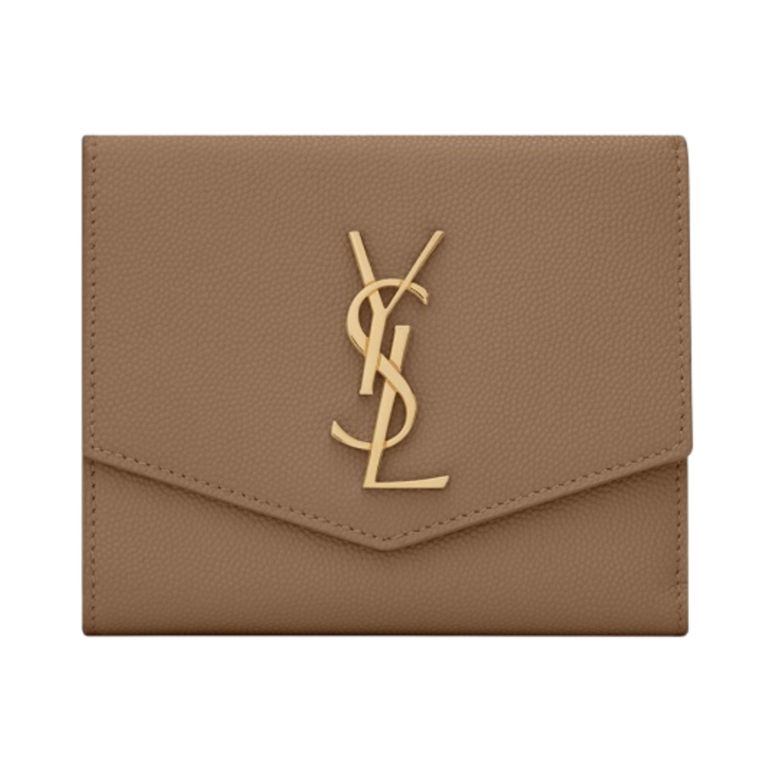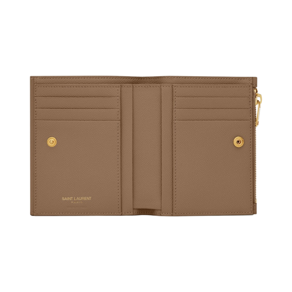 Saint Laurent Uptown Compact Wallet in Grain de Poudre Embossed Leather Taupe