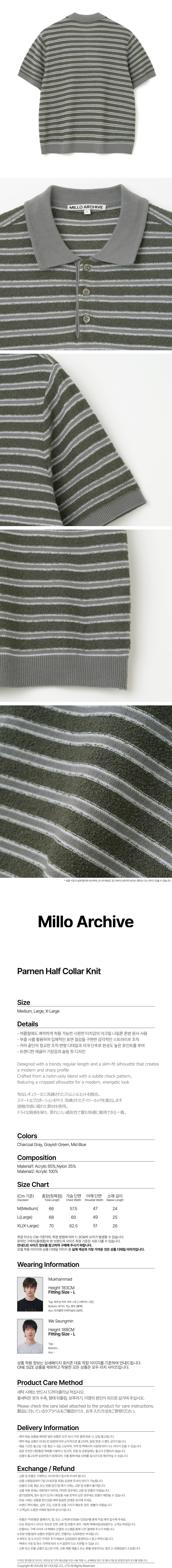 밀로 아카이브 파르넨 하프 카라 니트 그레이쉬 그린