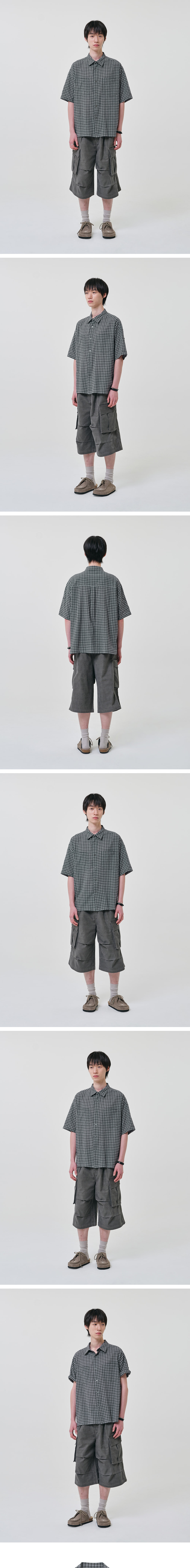 밀로 아카이브 내로우 링클 체크 롤업 하프 셔츠 그레이