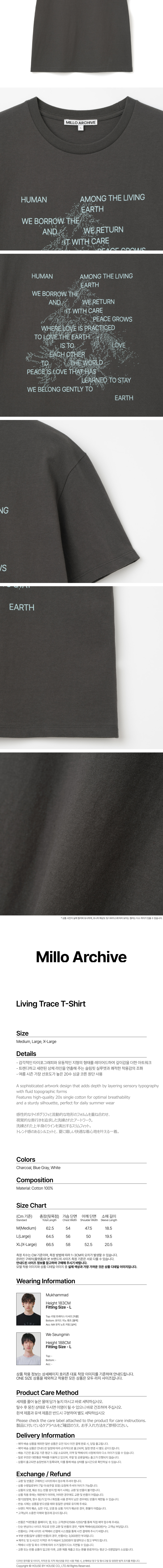 밀로 아카이브 리빙 트레이스 티셔츠 차콜