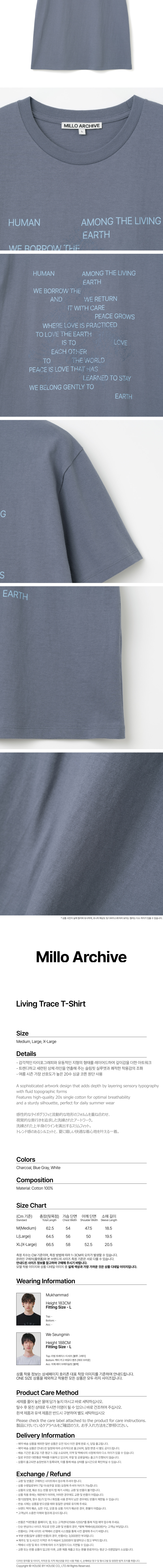 밀로 아카이브 리빙 트레이스 티셔츠 블루 그레이