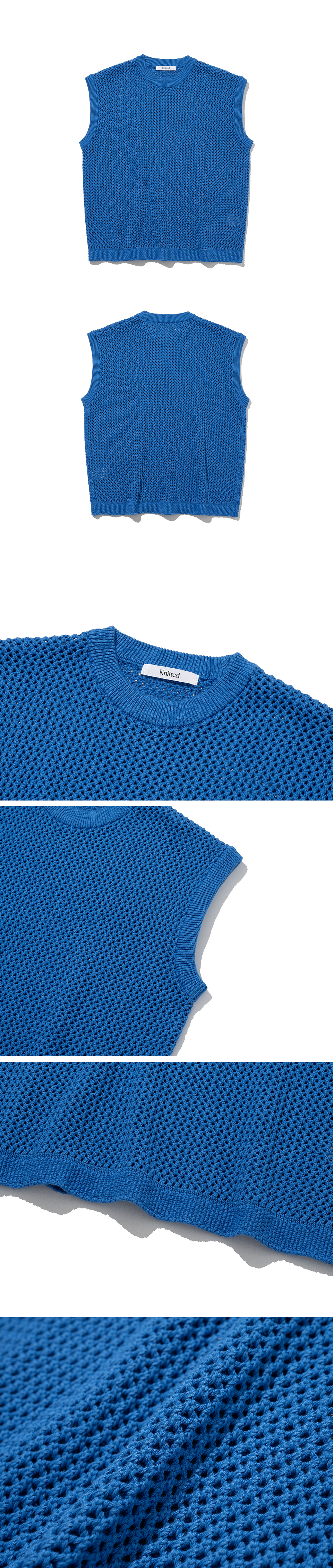 Knitted Net Round Vest Blue