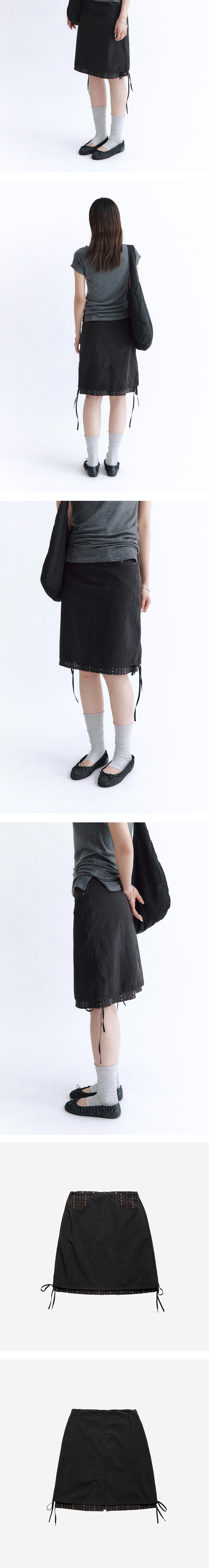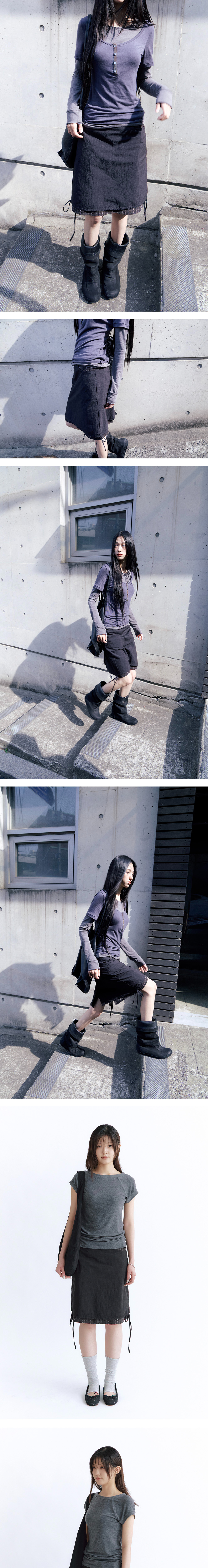 women layered skirt - 폴리테루 무드의 에스닉 자카드 안감이 레이어링 된 중간기장 스커트 - 빈티지한 텍스쳐의 겉감 소재 - 우먼즈 라인 아이템 및 폴리테루 멘즈웨어와도 좋은 호환성 - 포켓 배색 및 밑단 사이드 리본 스트링 디테일 *모델 1: 169cm / 마른 체형, 1 사이즈 착용 *모델 2: 169cm / 마른 체형, 1 사이즈 착용