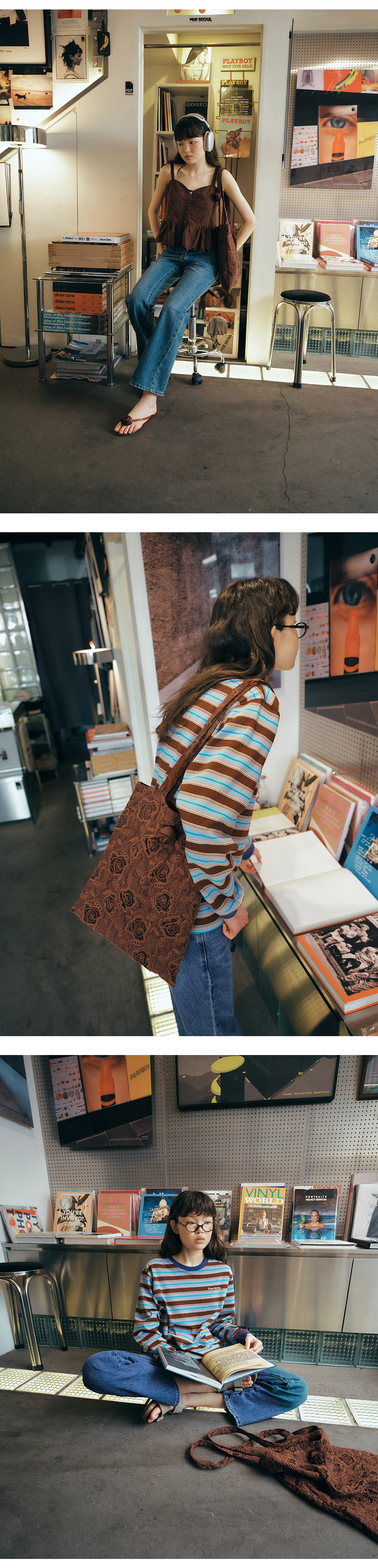 그린버터 로즈 자카드 백 브라운