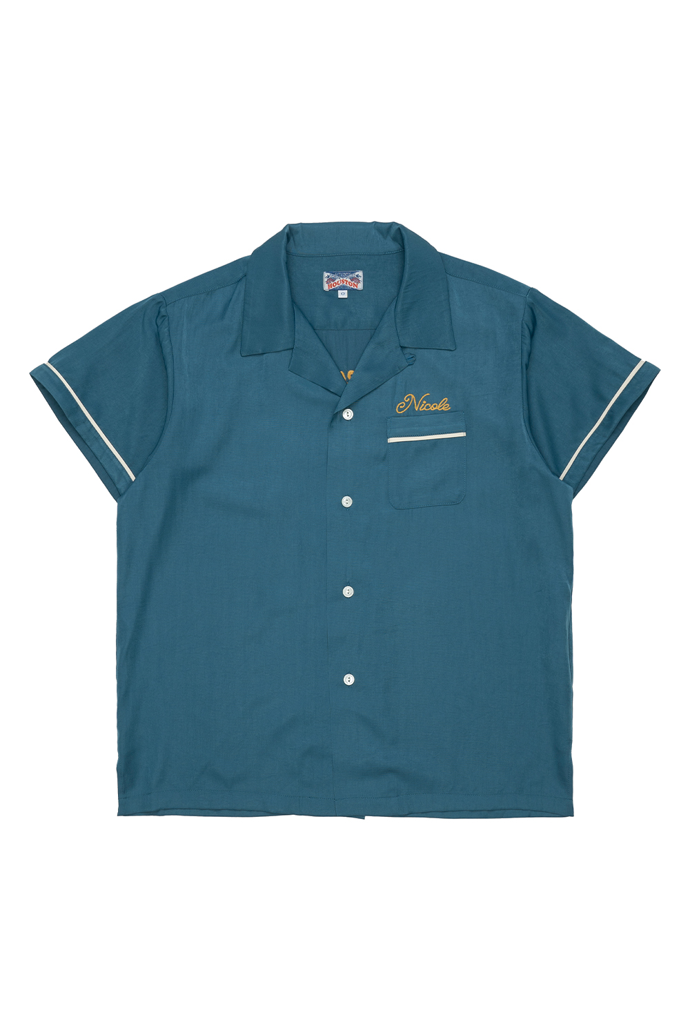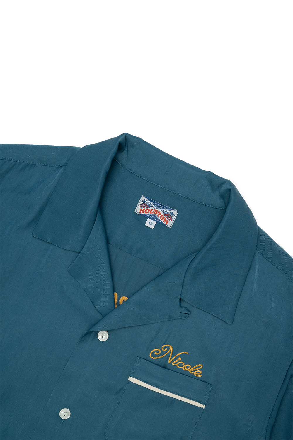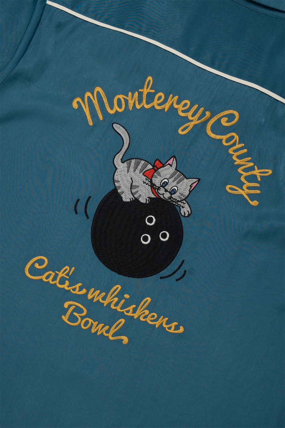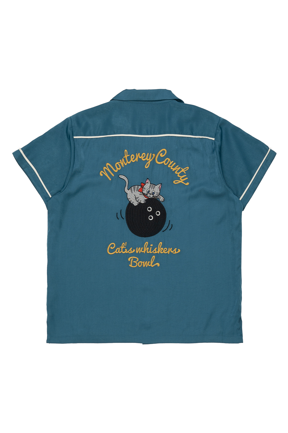 Houston Japan 4045W Bowling Shirt (Cat) - Turquoise 색상 배색 파이핑이 포인트인 볼링 셔츠입니다. 여유로운 실루엣과 부드럽고 가벼운 원단감으로 여름에도 입기 편한 아이템으로 완성했습니다. 등 부분 자수에는 공에 뛰어오른 장난꾸러기 고양이 무늬를 사용하였습니다. * Rayon 55% / Polyester 45% * 빛에 의한 제품의 색감 차이가 존재 할 수 있습니다. * Made in China