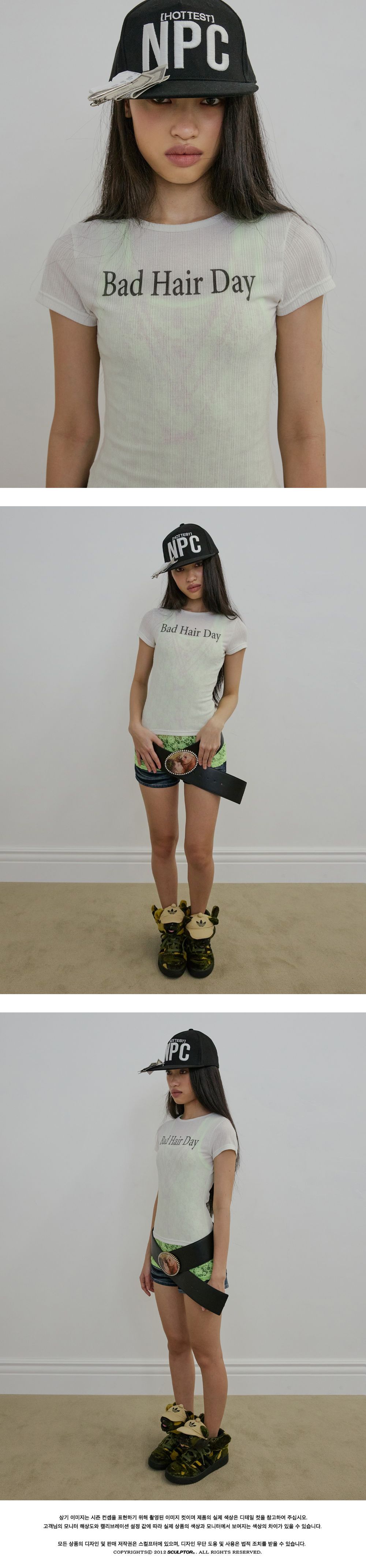 스컬프터 배드 헤어 데이 베이비 티 화이트