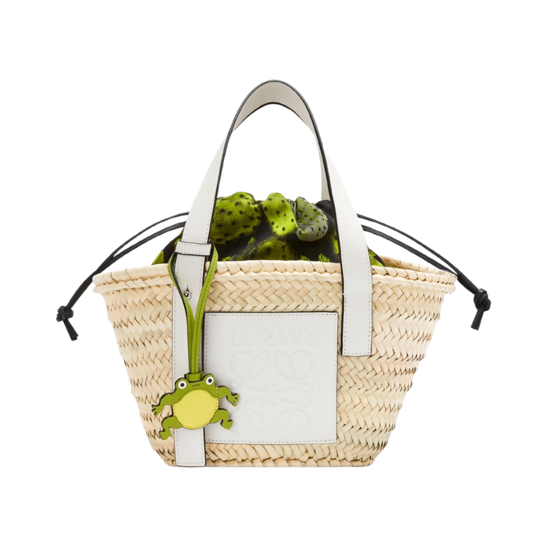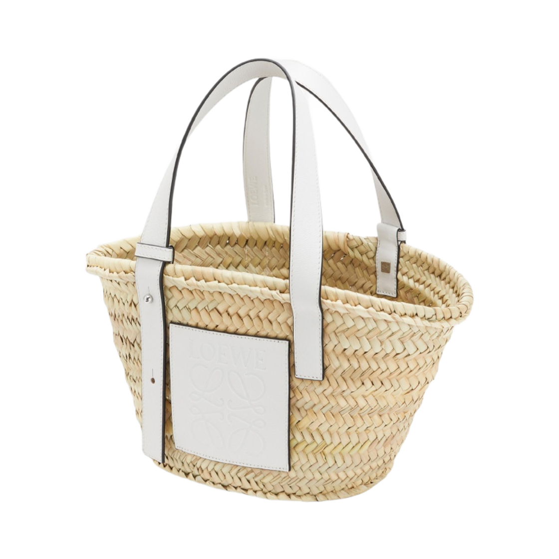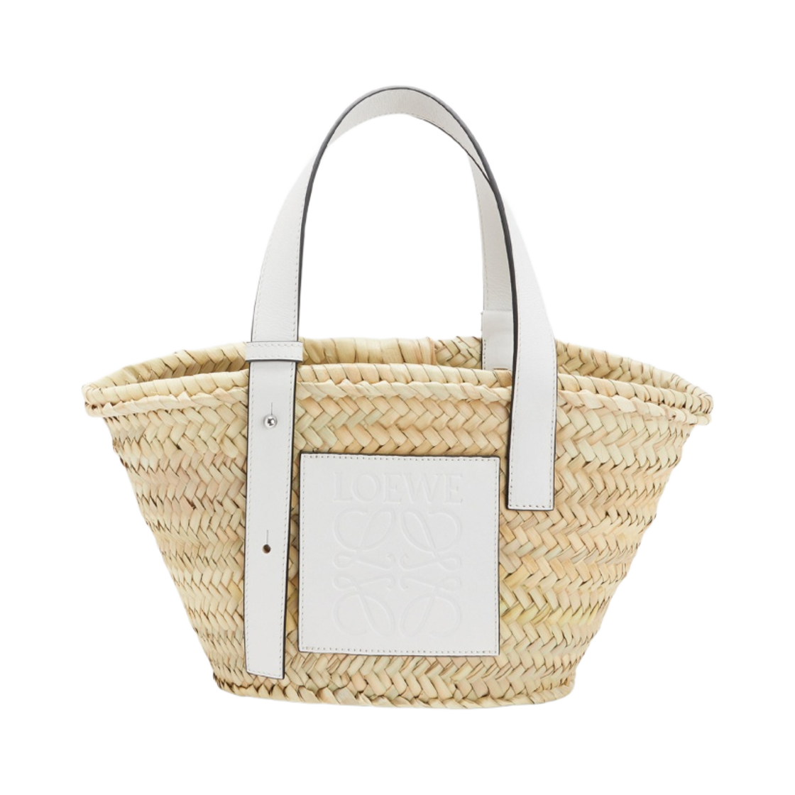 Loewe Small Basket Bag in Palm Leaf and Calfskin Natural White