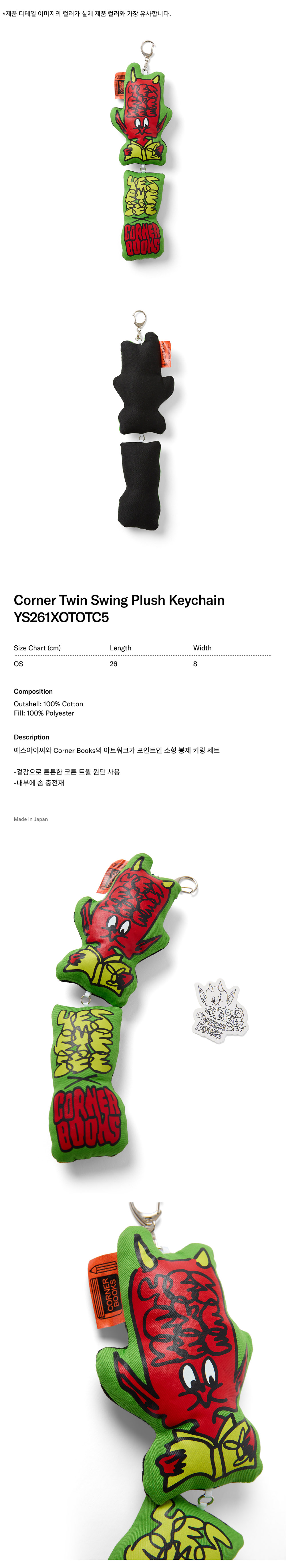 [더블적립] YESEYESEE Corner Twin Swing Plush Keychain Green