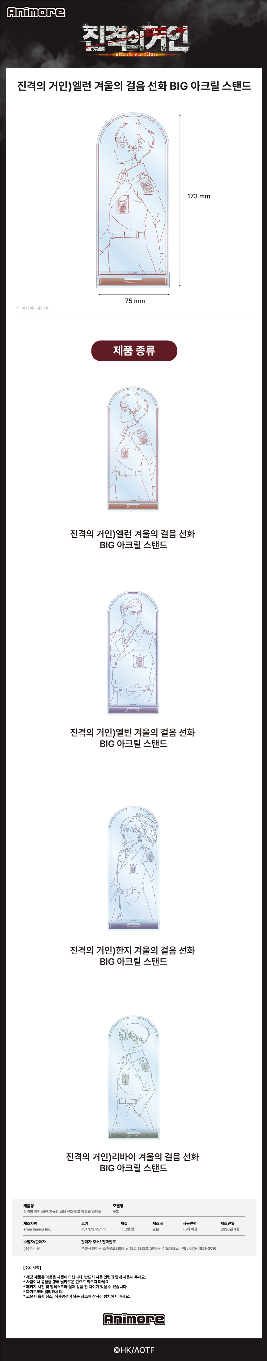 ![[예약배송] 애니모어 진격의 거인 엘런 겨울의 걸음 선화 BIG 아크릴 스탠드([예약배송] Animore Attack on Titan Eren Step Of Winter Line Art Big Acrylic Stand) - 1](https://kream-phinf.pstatic.net/MjAyNjA0MjFfMjA0/MDAxNzc2NzUyMzUzNzA5.JSSDjPyLySbWI4YwdyWPwPCMwYAykva0fKpPNej7QnAg.DkD5gKWpQZQTx5-hshLPulwoRLWrecjTnoNuOj5PlN4g.PNG/a_e8831d71ce4244b1b12d82a4a5790c47.png)