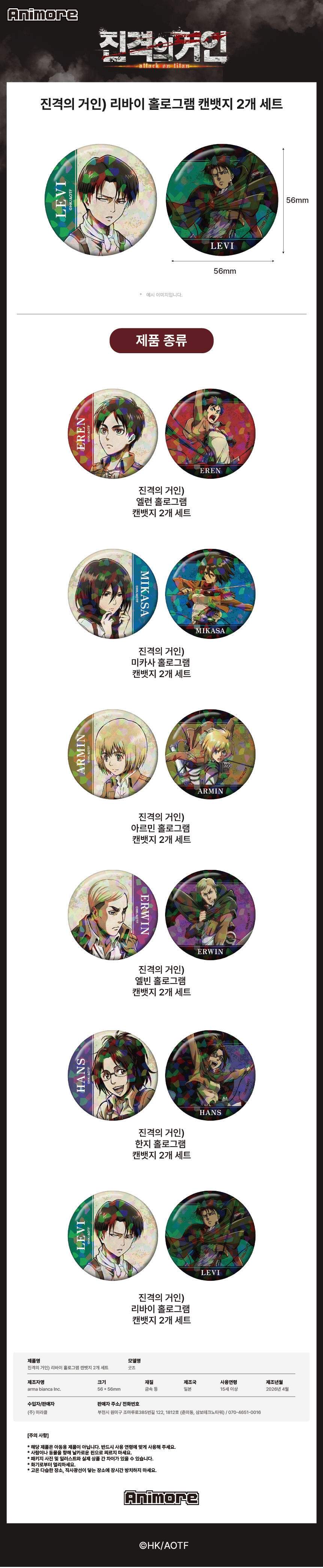 [예약배송] Animore Attack on Titan Levi Hologram Can Badge 2 Set