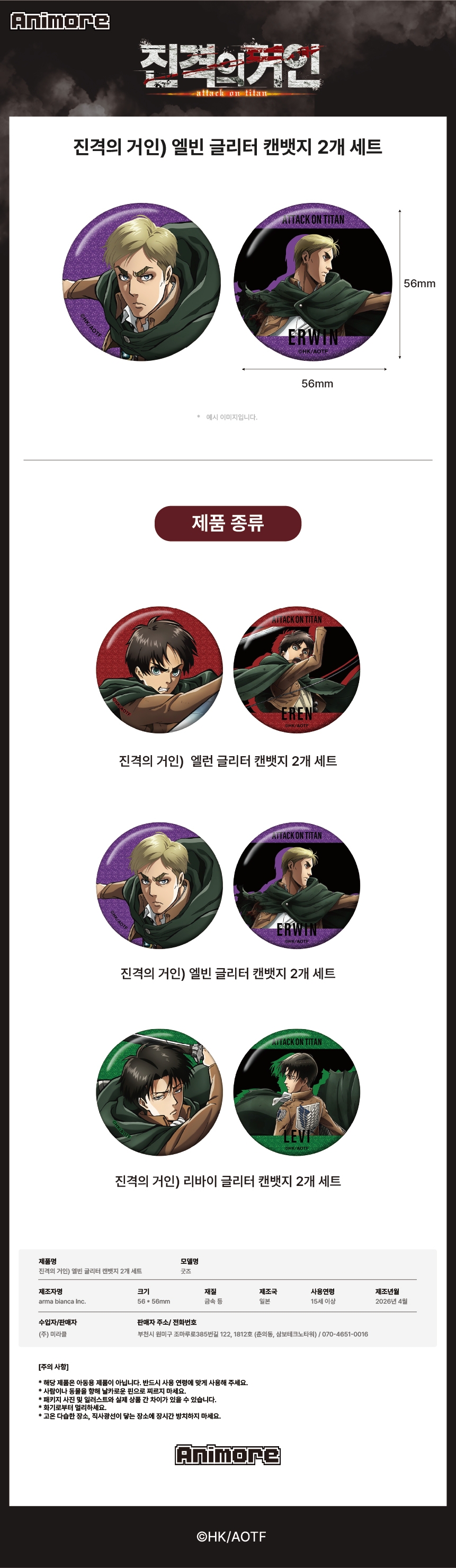 [예약배송] Animore Attack on Titan Erwin Glitter Can Badge 2 Set