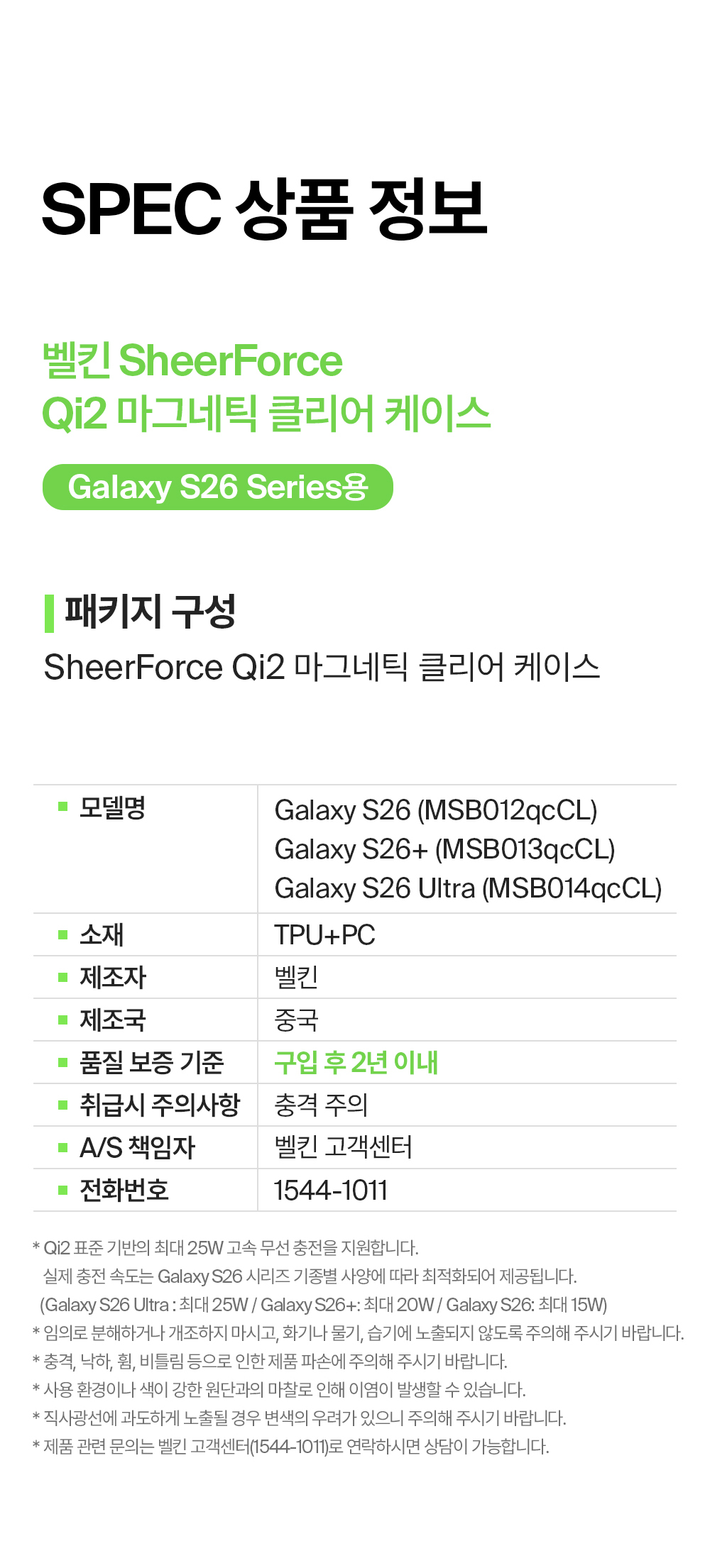 벨킨 갤럭시 S26 플러스 Qi2 25W 마그네틱 SMAPP 인증 투명 케이스 MSB013