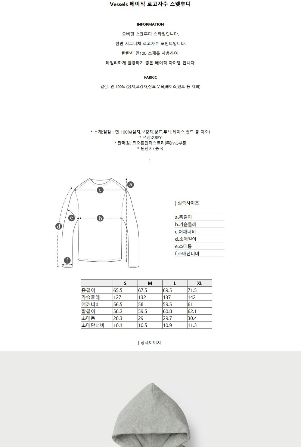 이로 베셀스 베이직 로고자수 스웻후디 그레이