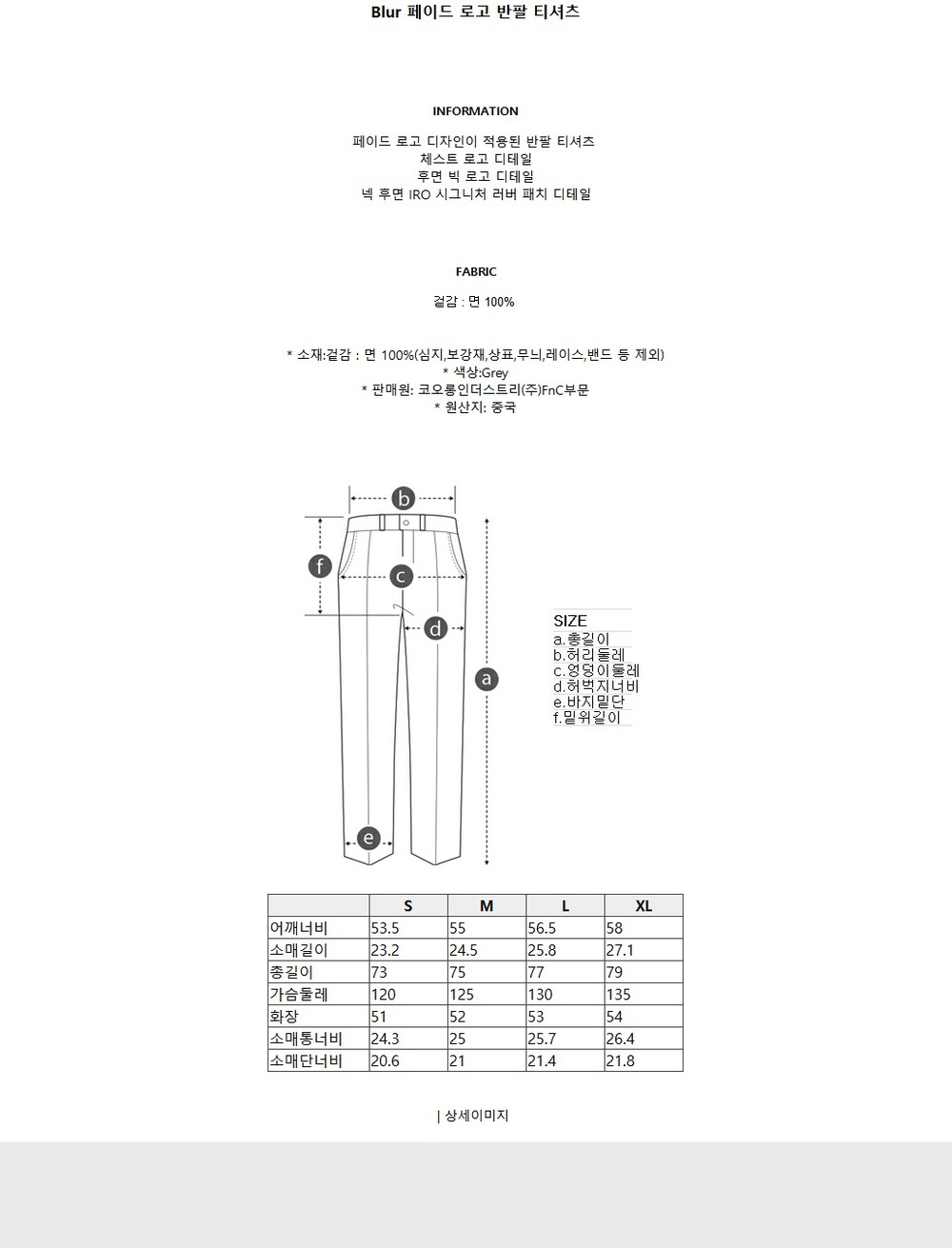 이로 블러 페이드 로고 반팔 티셔츠 그레이