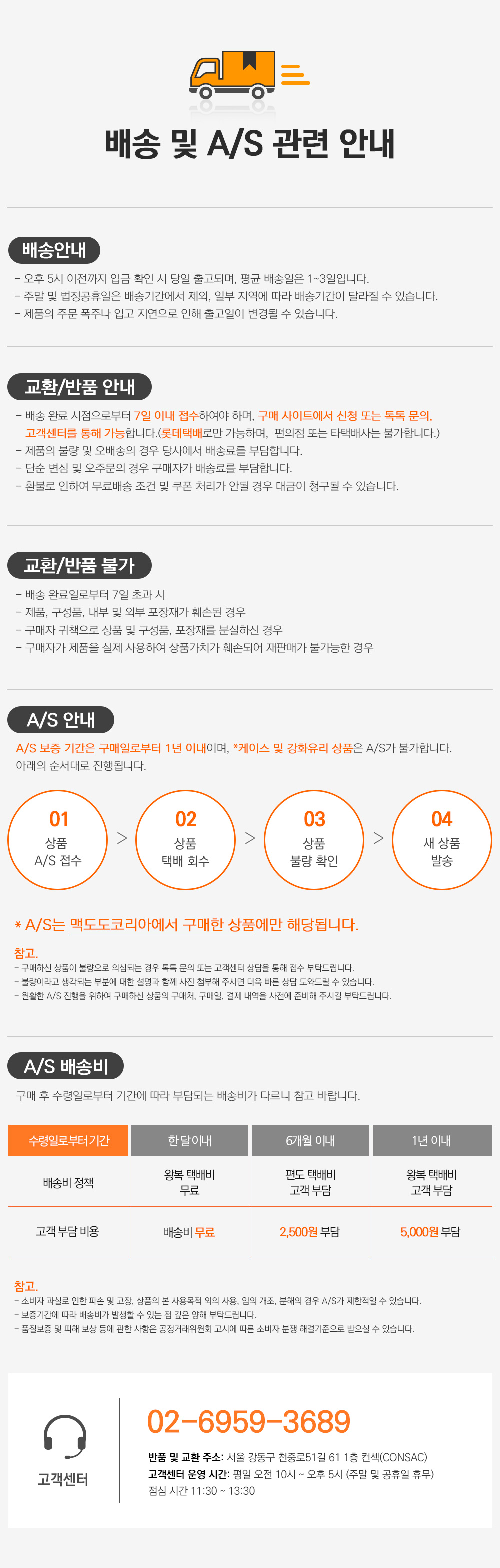 교환 및 반품 안내
